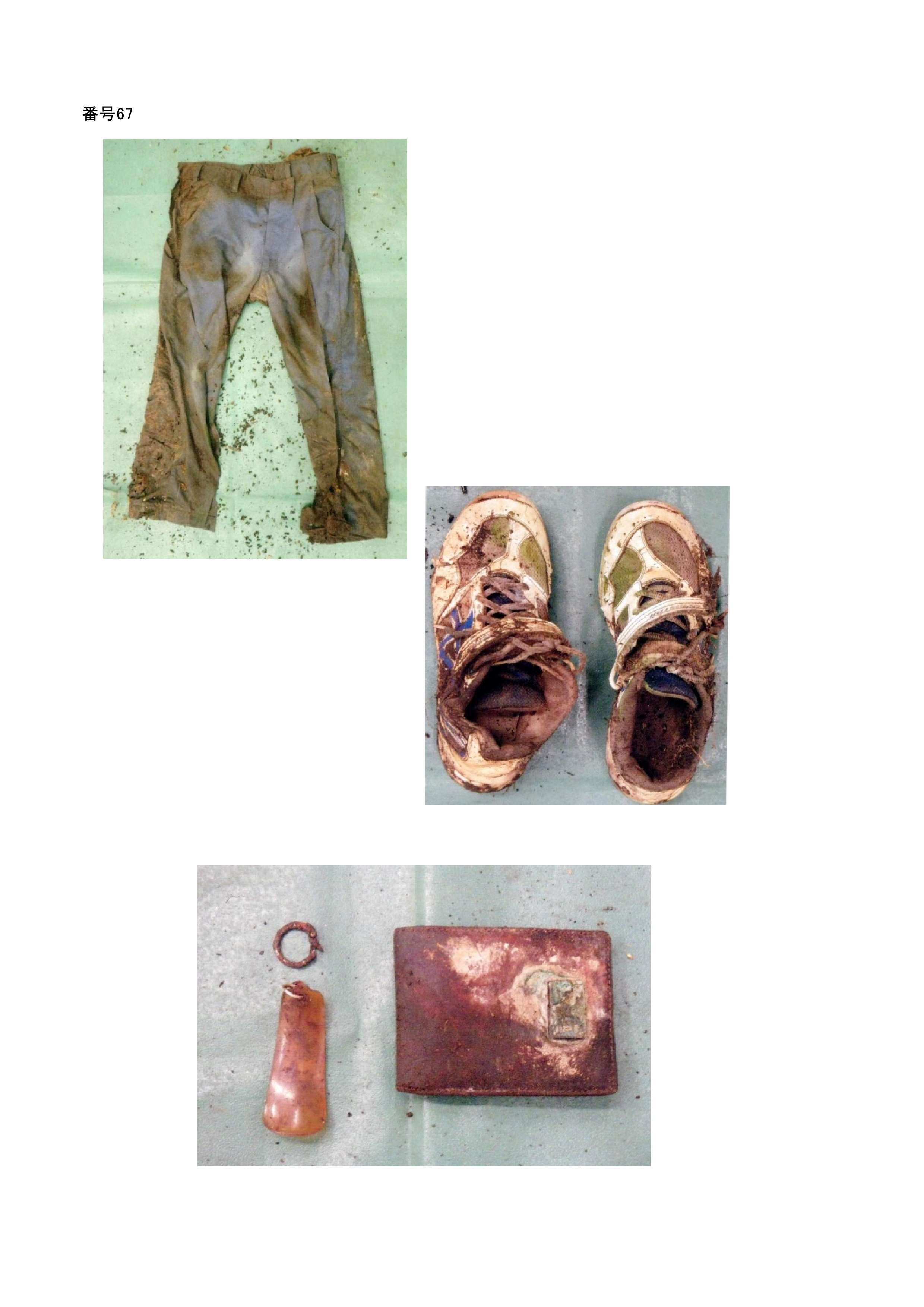 公開日 2021.02.21 番号67 沖縄署 平成30年 2号 発見された日 (死亡推定年月日) 平成29年12月4日 (平成29年) 発見された場所 沖縄県沖縄市知花在基地内 性別、推定年齢 性別:男性 推定年齢:60代~70代 身長体型 身長:不明 体型:不明 身体特徴 頭髪:3センチ 着衣 ジャンパー(緑色) 長袖(肌色) 作業ズボン(紺色) ベルト トランクス 財布(革製、二つ折り)トランクス スニーカー(「kiyuna」、「仁」と記載あり)25.0センチ 傘(紺色) お問い合わせ 沖縄県警察本部住所:沖縄県那覇市泉崎1-2-2 TEL:098-862-0110